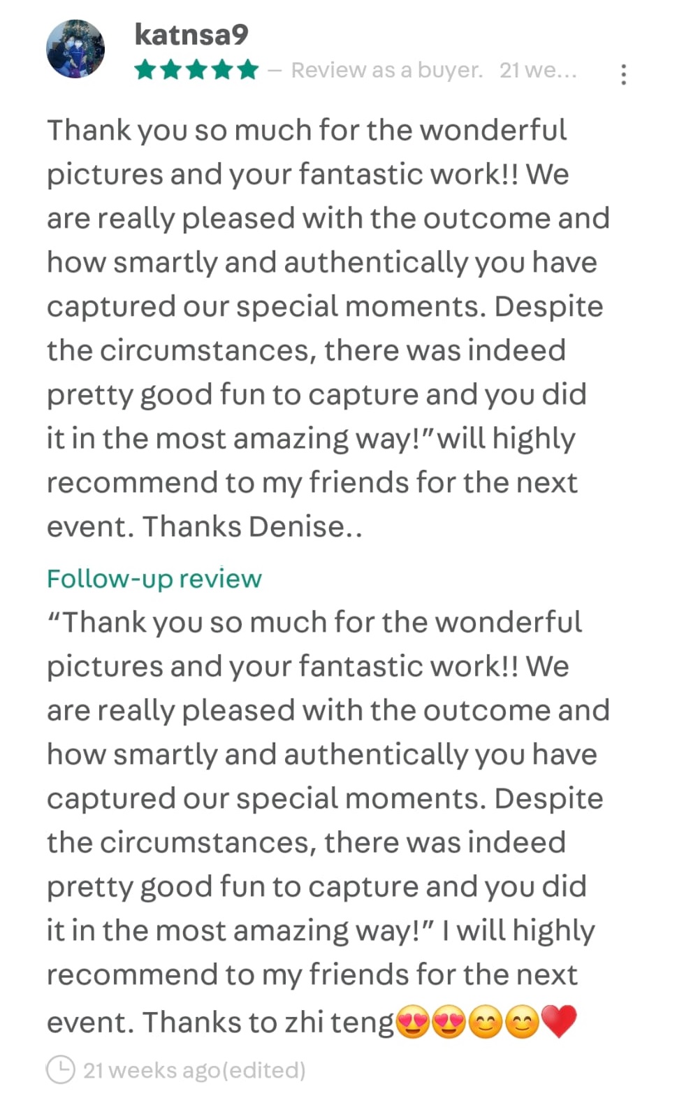 Zhi Photography, a professional photographer based in Singapore Region, specializes in weddings, couples, and family photography. We have been offering excellent photo and video services to various clients since 2022. We aim for perfection in every picture and are inspired by creative shots.